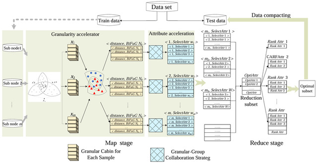 Ø Distributed parallel: The purpose is to gradually reduce the size of the fuzzy granular-cabin by selecting a subset of samples much smaller than the dataset, very close to the actual fuzzy information granules. Acceleration in the information granule is achieved without changing the results of the selected attributes.