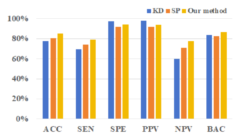 Fig. 2. Performance comparison of three knowledge distillation methods.