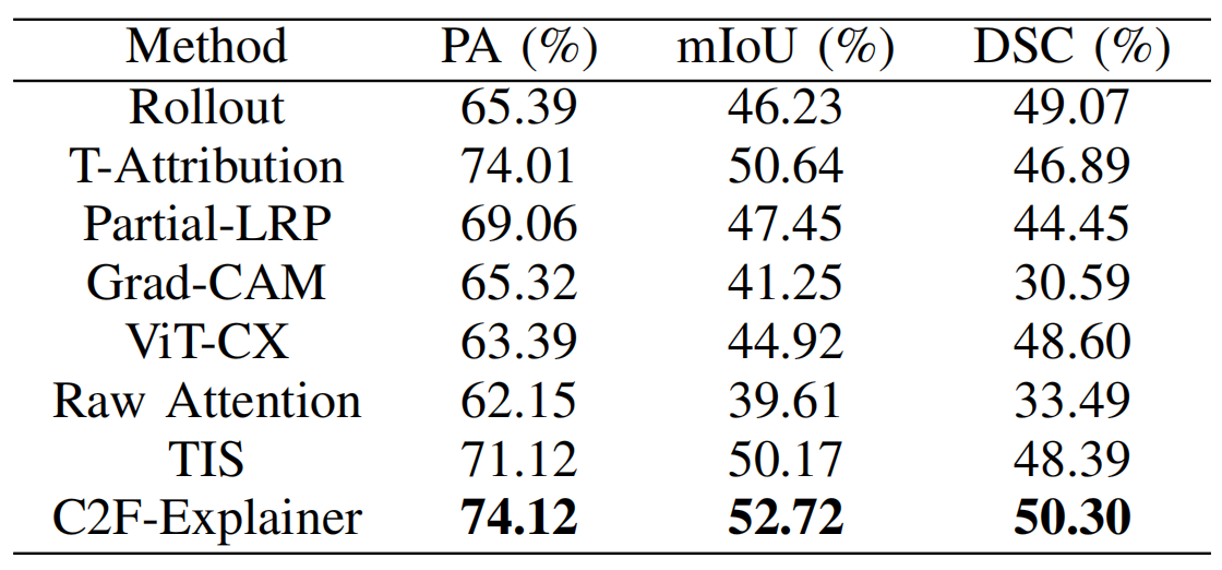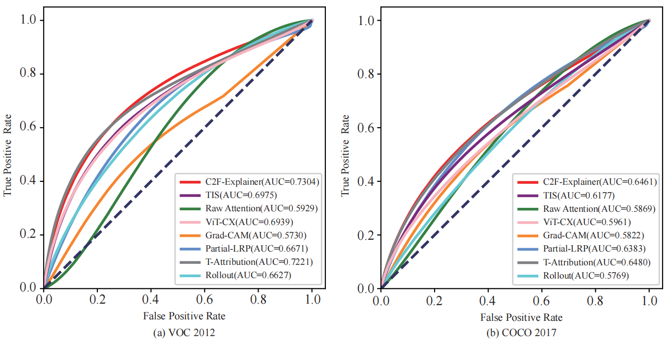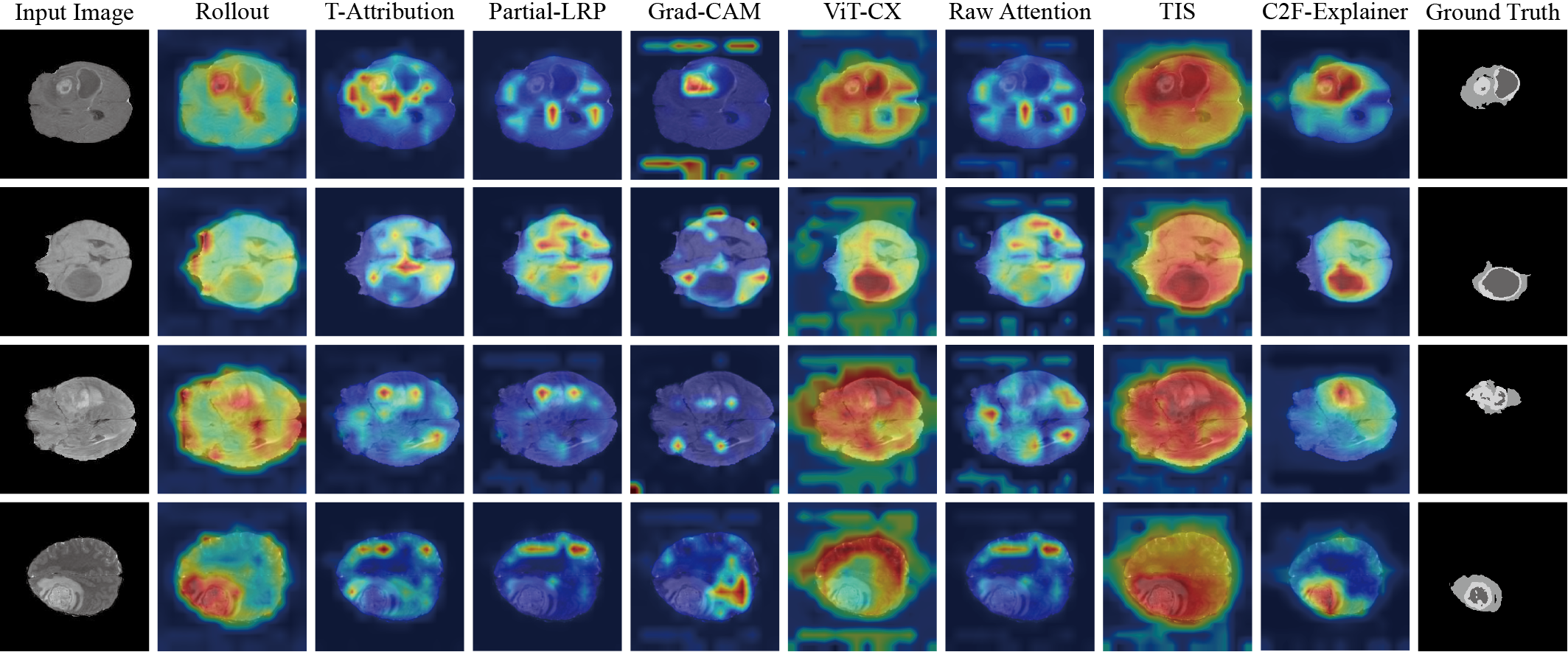 The proposed C2F-Explainer model is quantitatively and qualitatively evaluated on several datasets, including the ImageNet natural image dataset, the COCO 2017 natural image dataset, the VOC 2012 natural image dataset, and the BraTS brain tumor medical image dataset, to validate its performance. The experimental results show that the proposed method can achieve better explanation results than traditional interpretation methods.