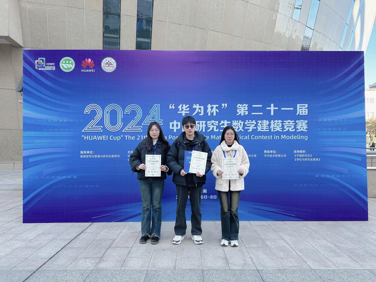 公司硕士研究生耿胜、朱林星和王静组成的参赛队荣获“华为杯”第二十一届中国研究生数学建模竞赛全国一等奖