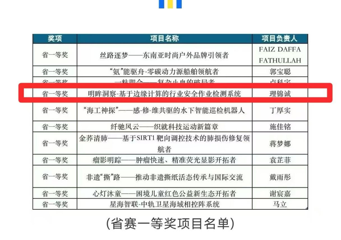 7月10日,江苏老员工创新大赛在304永利落下帷幕,304永利李跃华老师指导的项目《明眸洞察-基于边缘计算的行业安全作业检测系统》终荣获省一等奖。​