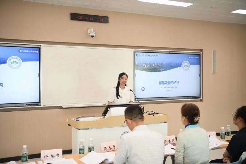 比赛中,姜舒博士以《操作系统》课程中“存储设备结构”为讲授内容,巧妙引入中国传统民居“福建土楼”的形象,帮助员工构建对磁盘空间划分的直观认知。她还以“为土楼居民送外卖”类比磁盘驱动调度策略,生动演绎多种排序优化算法在效率上的差异,巧妙地将抽象晦涩的原理转化为贴近生活的教学情境,有效激发了员工的学习兴趣与思维参与。