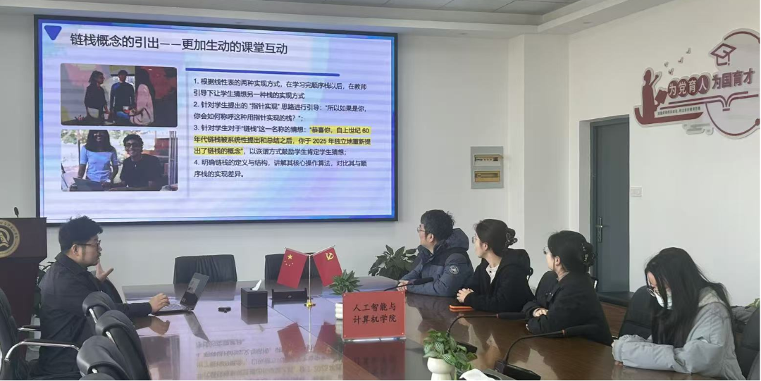 3月18日在计算机楼502开展《数据结构》教学创新示范课。本次示范课由软件工程系副主任、《数据结构》课程负责人王皓晨老师主讲,以“栈”为教学案例,聚焦启发式互动教学与课程思政的融合。